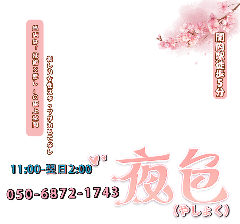 「いってらっしゃい」「おかえりなさい」とお見送り、お出迎えができる店をめざして、スタッフ一同努めてまいります。日常生活の過酷なプレッシャーから逃れ、私共の優しいふれあいのテクニックで緊張を緩和し、ヒーリングミュージックとアロマの香りにつつまれた清潔な完全個室で、明日からの活力にかわる非日常を体験して頂けるお店です。